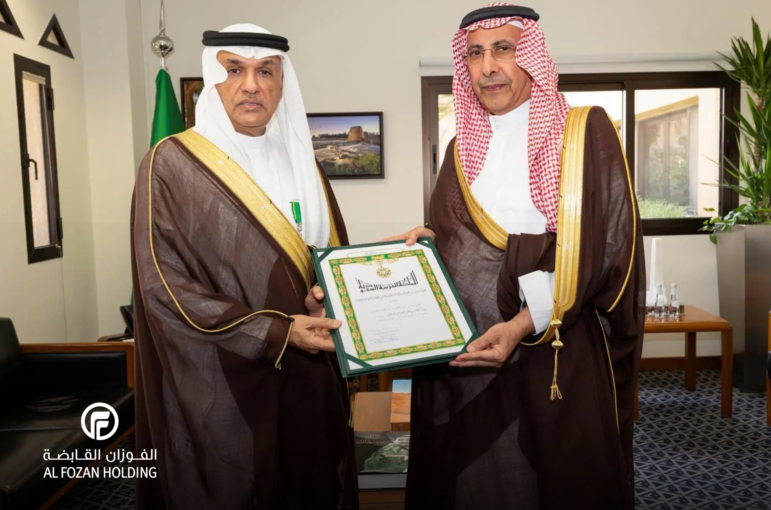 إنفاذًا للأمر الملكي الكريم، سلَّم وزير الدولة عضو مجلس الوزراء، الرئيس التنفيذي للهيئة الملكية لمدينة الرياض، المهندس إبراهيم بن محمد السلطان، رجلي الأعمال عبدالله بن عبداللطيف الفوزان، ومحمد بن عبدالعزيز الشايع، وسام الملك عبدالعزيز من الدرجة الرابعة.